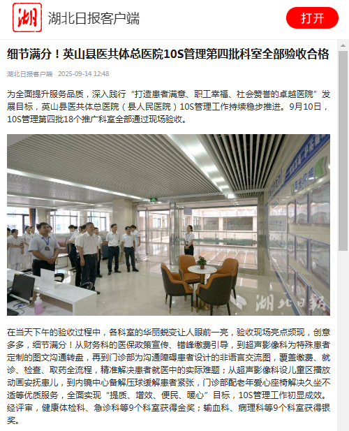 【湖北日报】完美收官!英山县医共体总医院10S管理全面完成打造