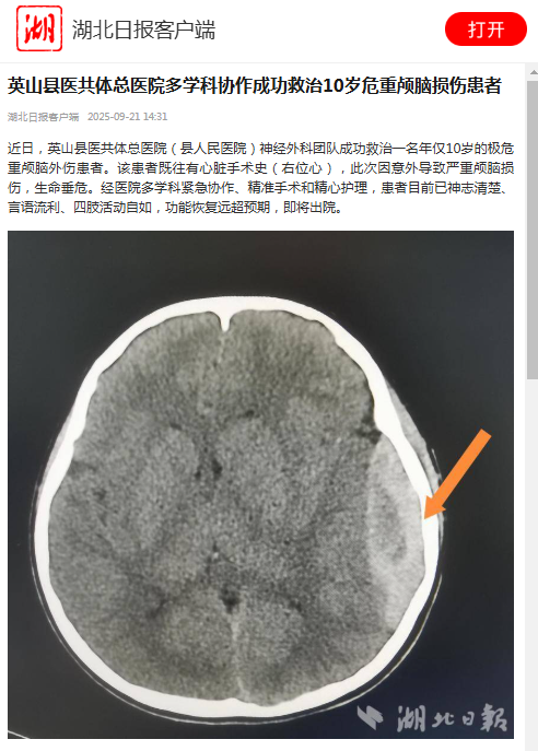 英山县医共体总医院多学科协作成功救治10岁危重颅脑损伤患者