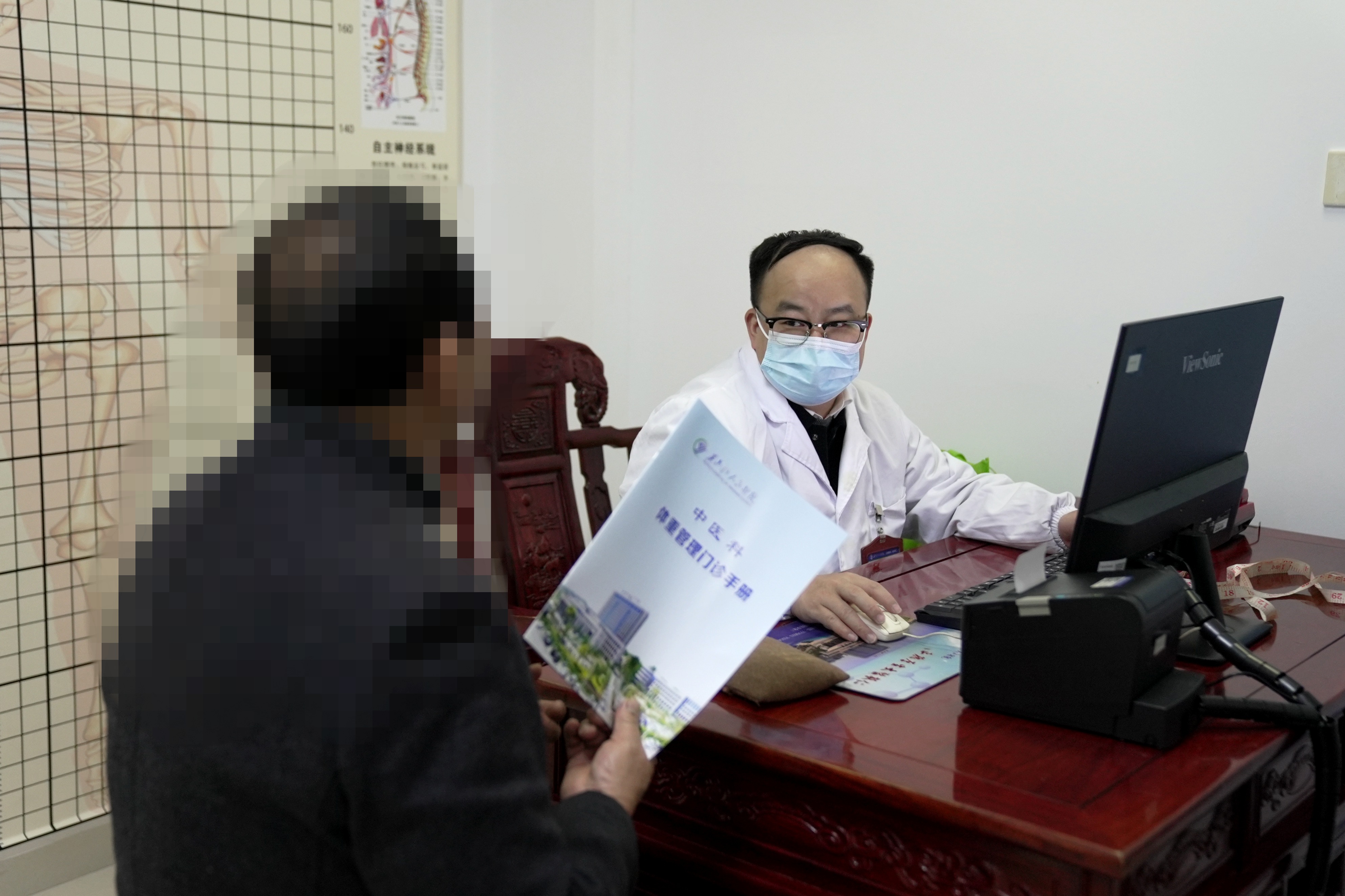 走进位于门诊二楼国医堂内的体重管理门诊,淡淡的艾草香扑面而来。该院体重管理门诊副主任医师汤刚义在为一位体型偏胖、舌苔厚腻的患者分析病情时说,“很多患者的肥胖不是营养过剩,而是营养无法被身体有效利用,是典型的脾虚湿盛体质。中医看来,赘肉堆积往往提示身体内部失衡,比如脾虚导致代谢无力,肝郁引起气机不畅,阳虚导致寒湿内停。因此,我们的工作不是替患者节食,而是帮他们恢复身体自身的运化和代谢能力。”