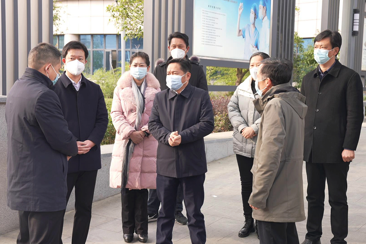 12月29日上午,县委书记郑光文,县委常委、组织部部长周锋、副县长黄伟等同志一行到我院检查指导新冠病毒感染患者医疗救治工作。县卫健局局长韩亮、医院党委书记姜卫中、院长赵茂林等同志陪同。
