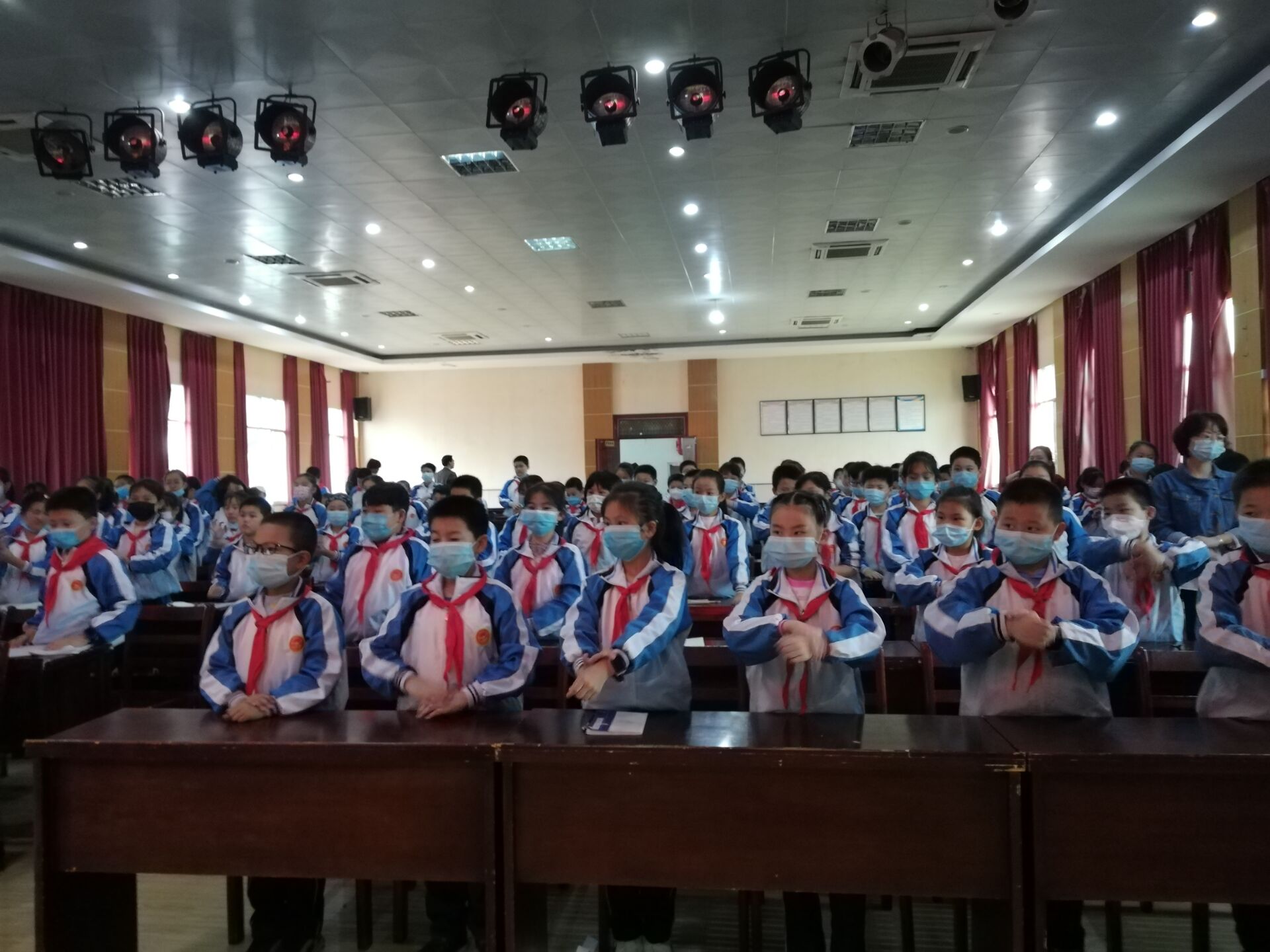 在现场提问环节,老师和学生们纷纷举手提问,其中二小的同学就提了三个问题:1、生活中,如果遇到了烧伤或者烫伤应怎样处理?2、小孩子喜欢将硬币或者笔头这样的东西含在嘴里玩,如果不小心吞下去了怎么办?3、我们学校每个教室都有紫外线消毒灯,每天晚上学生离校后都会开启消毒灯消毒,请问:紫外线消毒灯能消灭新冠病毒吗?这三个问题,分别由王勤和舒畅作了专业回答。博得了师生们的掌声。