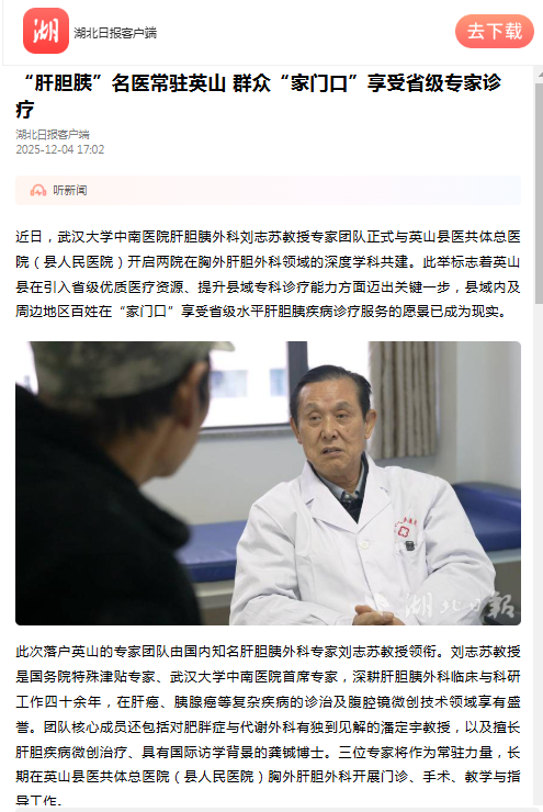【湖北日报】“肝胆胰”名医常驻英山 群众“家门口”享受省级专家诊疗