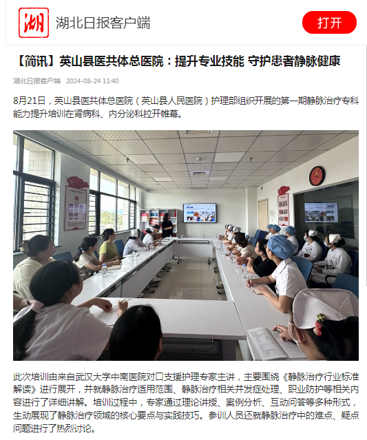 【湖北日报】英山县医共体总医院:提升专业技能 守护患者静脉健康