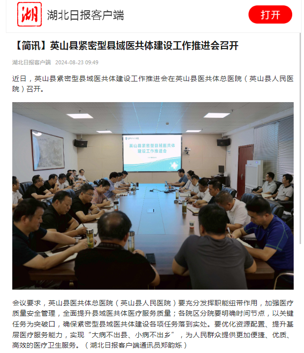 【湖北日报】英山县紧密型县域医共体建设工作推进会召开