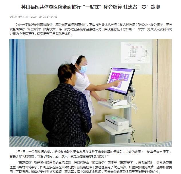 【湖北日报】英山县医共体总医院全面推行“一站式”床旁结算 让患者“零”跑腿