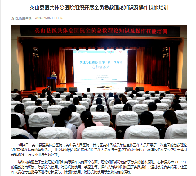 【湖北日报】英山县医共体总医院组织开展全员急救理论知识及操作技能培训