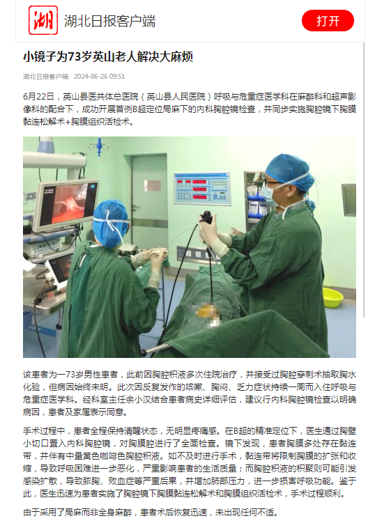 【湖北日报】英山县医共体总医院成功救治一名双下肢动脉急性血栓患者