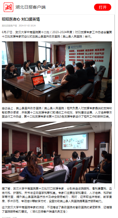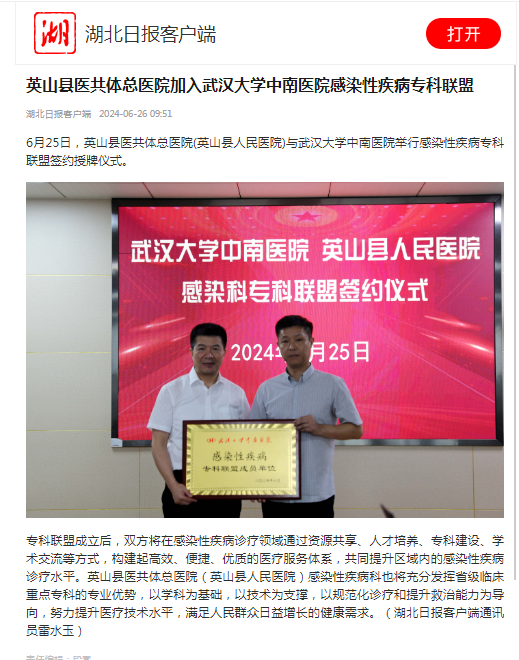 【湖北日报】英山县医共体总医院加入武汉大学中南医院感染性疾病专科联盟