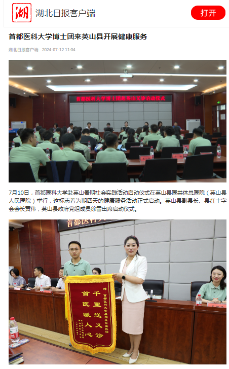 【湖北日报】首都医科大学博士团来英山县开展健康服务
