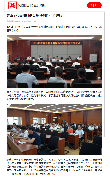 【湖北日报】英山:转岗培训促提升 全科医生护健康