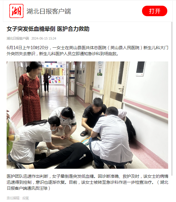 【湖北日报】女子突发低血糖晕倒 医护合力救助