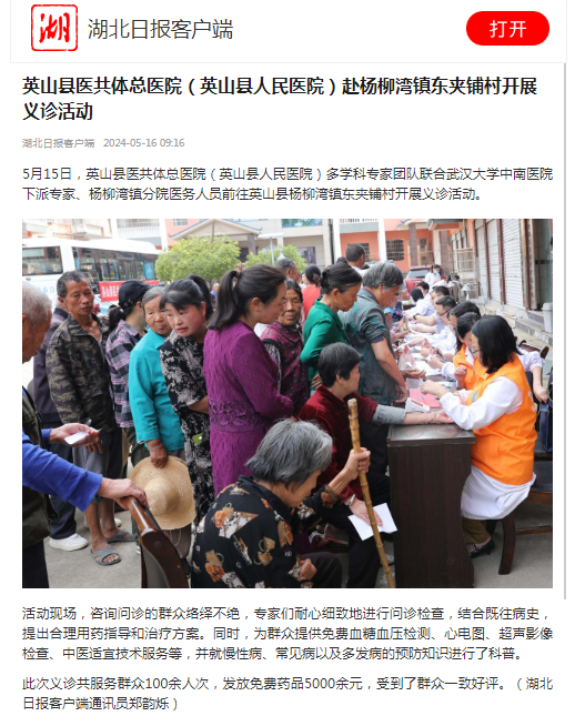 【湖北日报】英山县医共体总医院(英山县人民医院)赴杨柳湾镇东夹铺村开展义诊活动