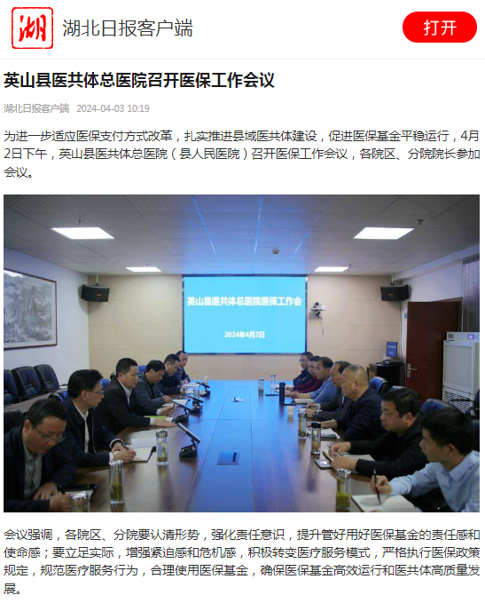 【湖北日报】英山县医共体总医院召开医保工作会议