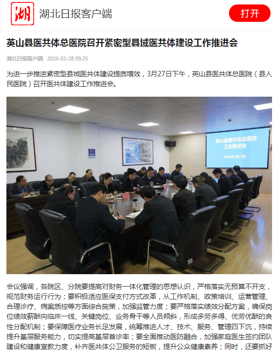 【湖北日报】英山县医共体总医院召开紧密型县域医共体建设工作推进会