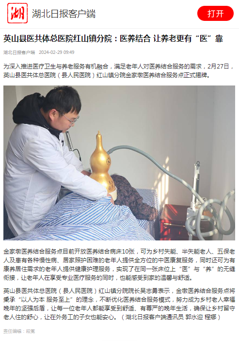 【湖北日报】英山县医共体总医院红山镇分院:医养结合 让养老更有“医”靠