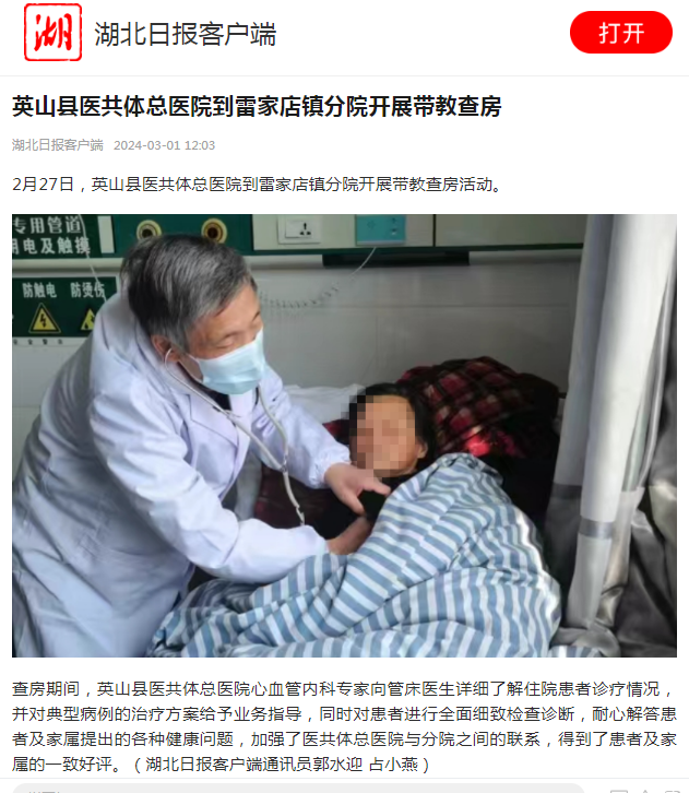 【湖北日报】英山县医共体总医院到雷家店镇分院开展带教查房