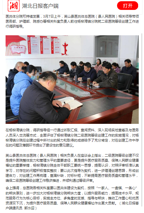 【湖北日报】英山县医共体总医院深入基层 助推杨柳湾镇分院等级创建工作