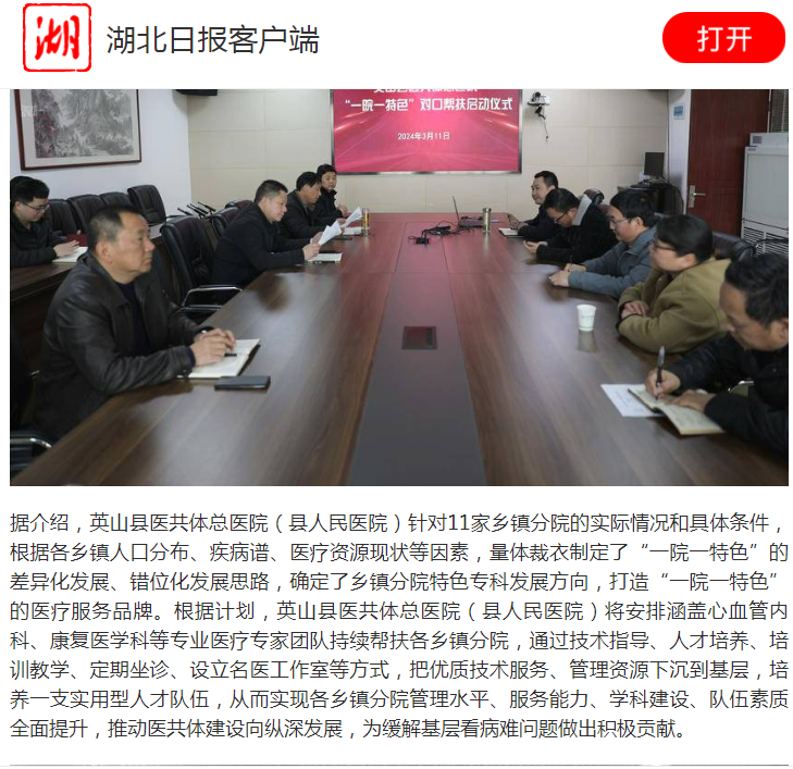 【黄冈日报】英山县医共体总医院打造“一院一特色”