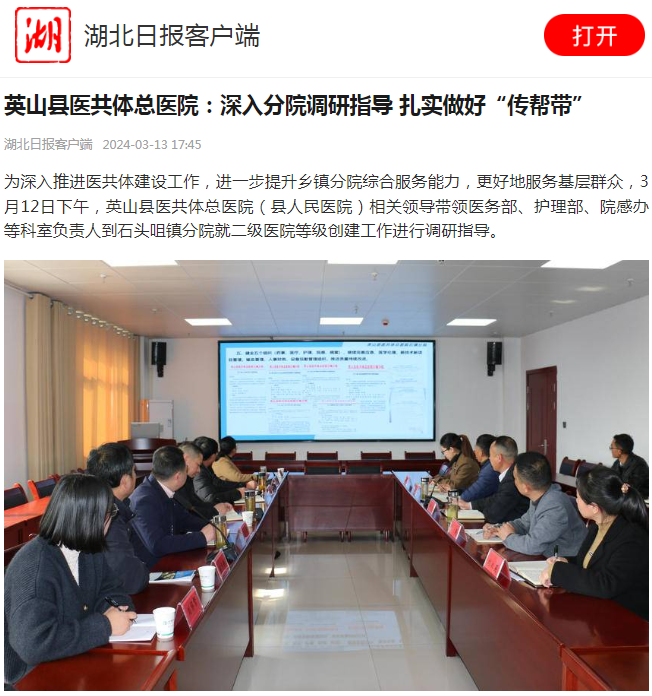 【湖北日报】英山县医共体总医院:深入分院调研指导 扎实做好“传帮带”