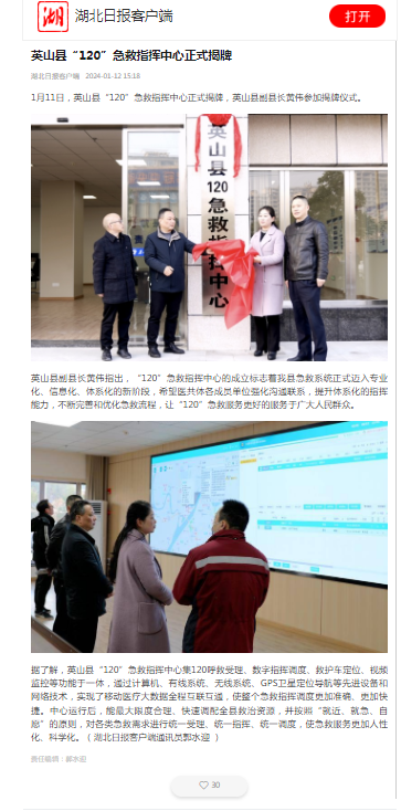 【湖北日报】英山县“120”急救指挥中心正式揭牌