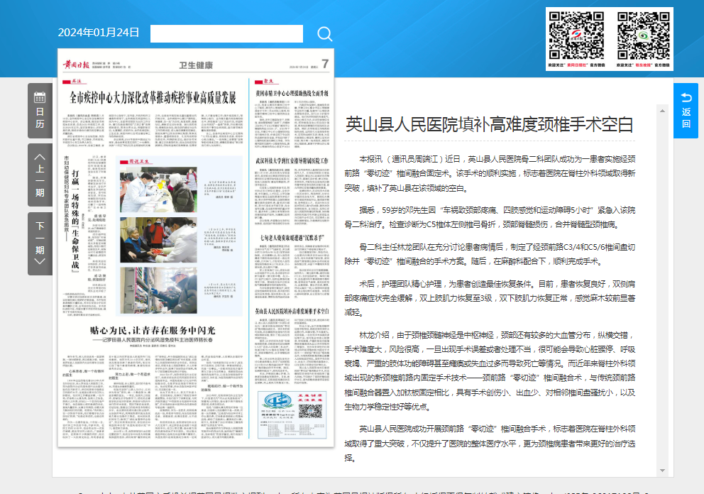 【黄冈日报】英山县人民医院填补高难度颈椎手术空白