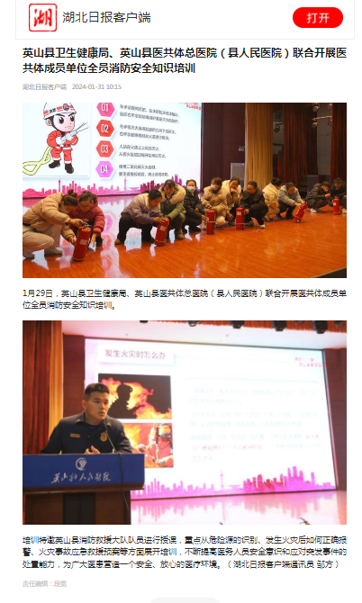 【湖北日报】英山县卫生健康局、英山县医共体总医院(县人民医院)联合开展医共体成员单位全员消防安全知识培训
