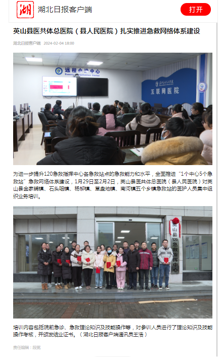 【湖北日报】英山县医共体总医院(县人民医院)扎实推进急救网络体系建设