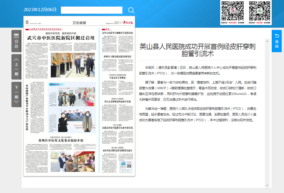 【黄冈日报】英山县人民医院成功开展首例经皮肝穿刺胆管引流术