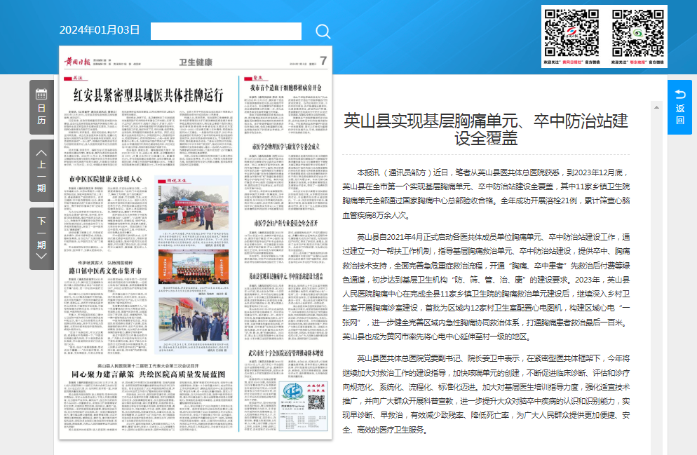 【黄冈日报】英山县实现基层胸痛单元、卒中防治站建设全覆盖