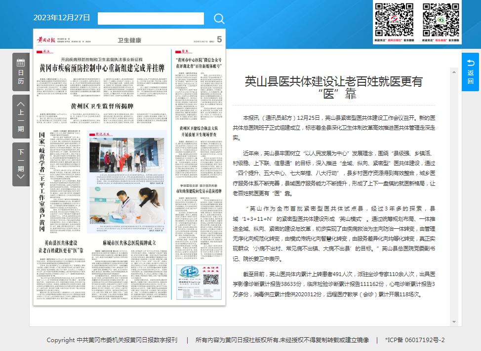【黄冈日报】英山县医共体建设让老百姓就医更有“医”靠