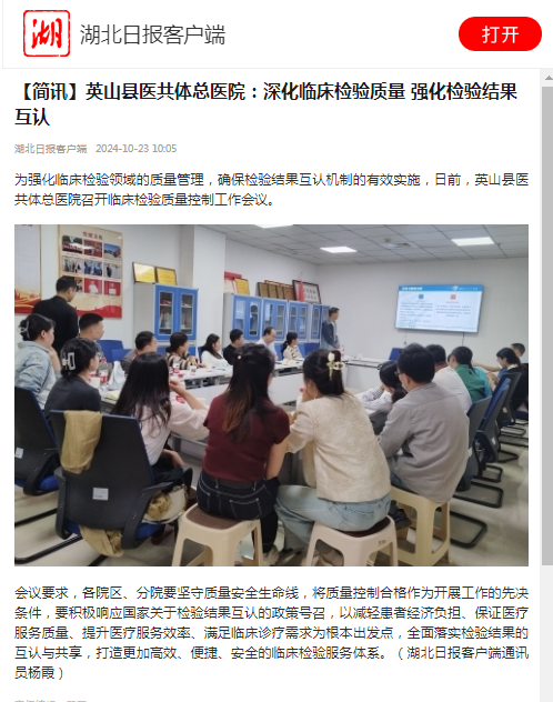 【湖北日报】英山县医共体总医院:深化临床检验质量 强化检验结果互认